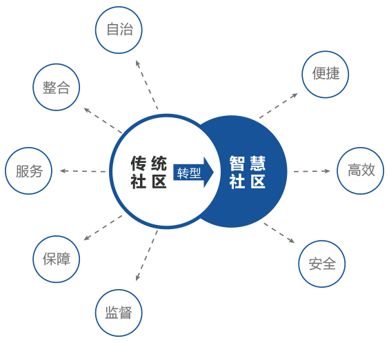 通过智能管理系统,连接硬件、APP物业与住户,实现物业在线服务。